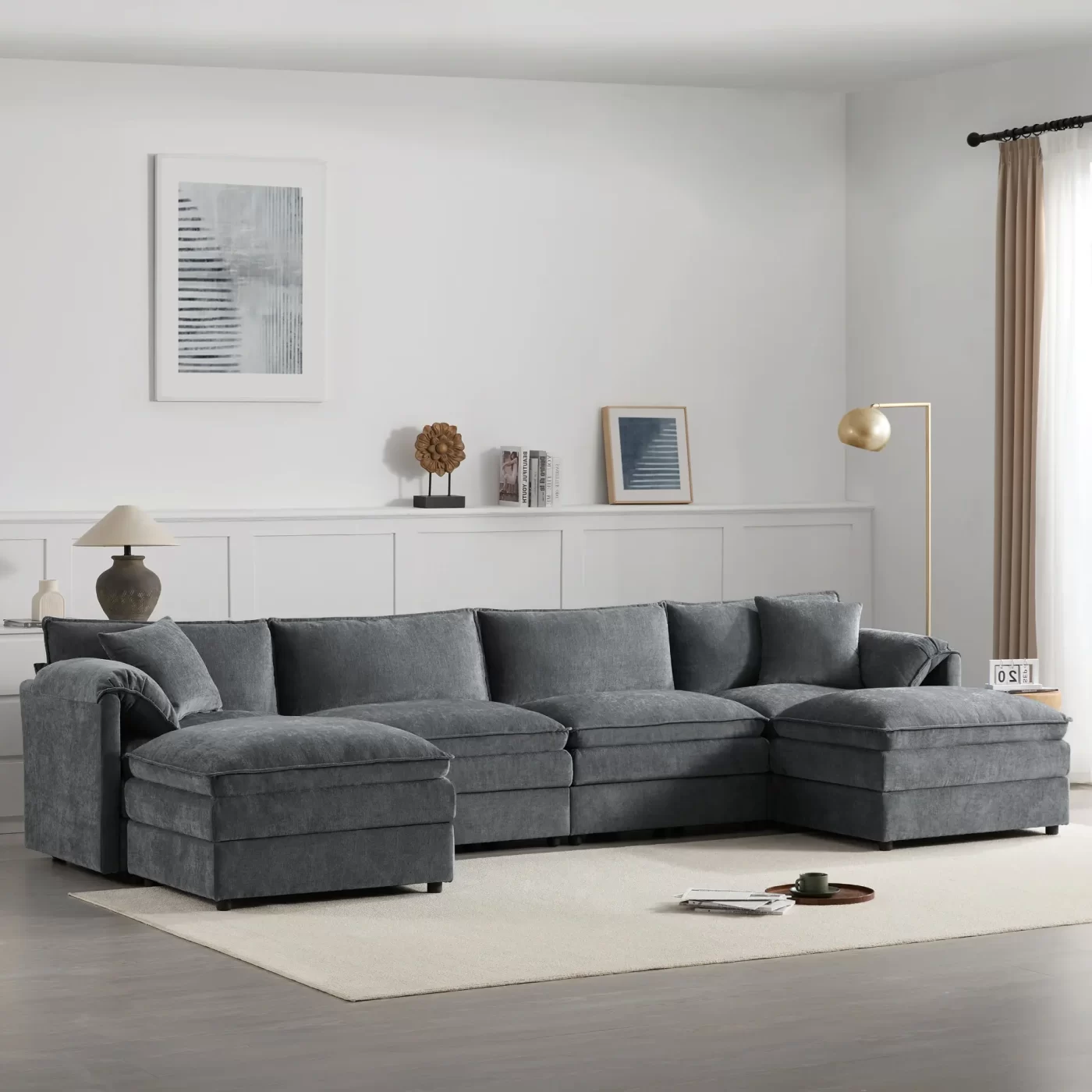 Indulge in luxury with our modular sofa, designed for ultimate comfort. Featuring thickened double cushions, soft armrest pillows, and spacious seating with extra-wide and deep dimensions. Complete your relaxation with a removable footrest, offering flexible and customizable comfort for your living space.