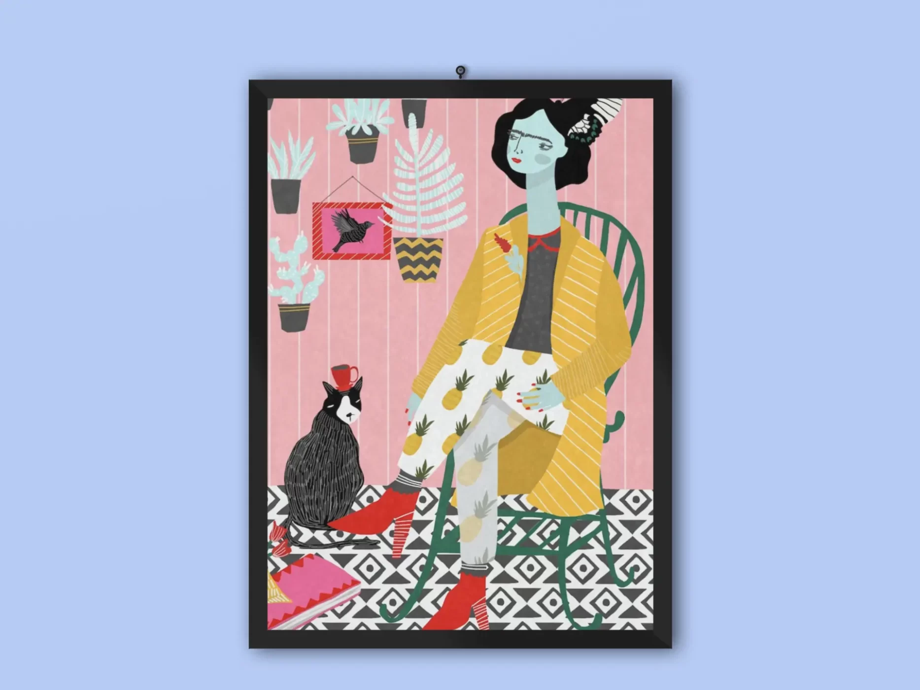 The Vector frame is made from solid wood with a contemporary, angular profile measuring 0.87″ wide x 0.87″ deep. A gesso coating gives the moulding rich color and a smooth finish. Premium shatterproof acrylic protects the art print, while an acid free dust cover on the back provides a custom finish. Includes wall hanging hardware