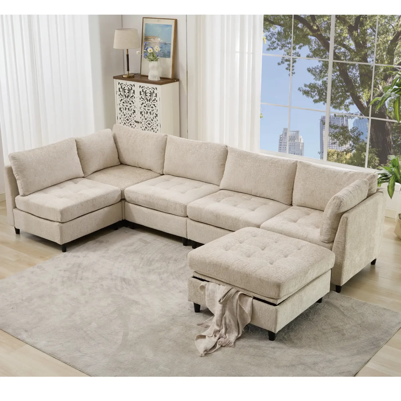 - Hidden storageHidden storage under the footstool reduces clutter in the living room and keeps everyday items within reach. It also makes this modular sofa beautiful and comfortable to match your living room.