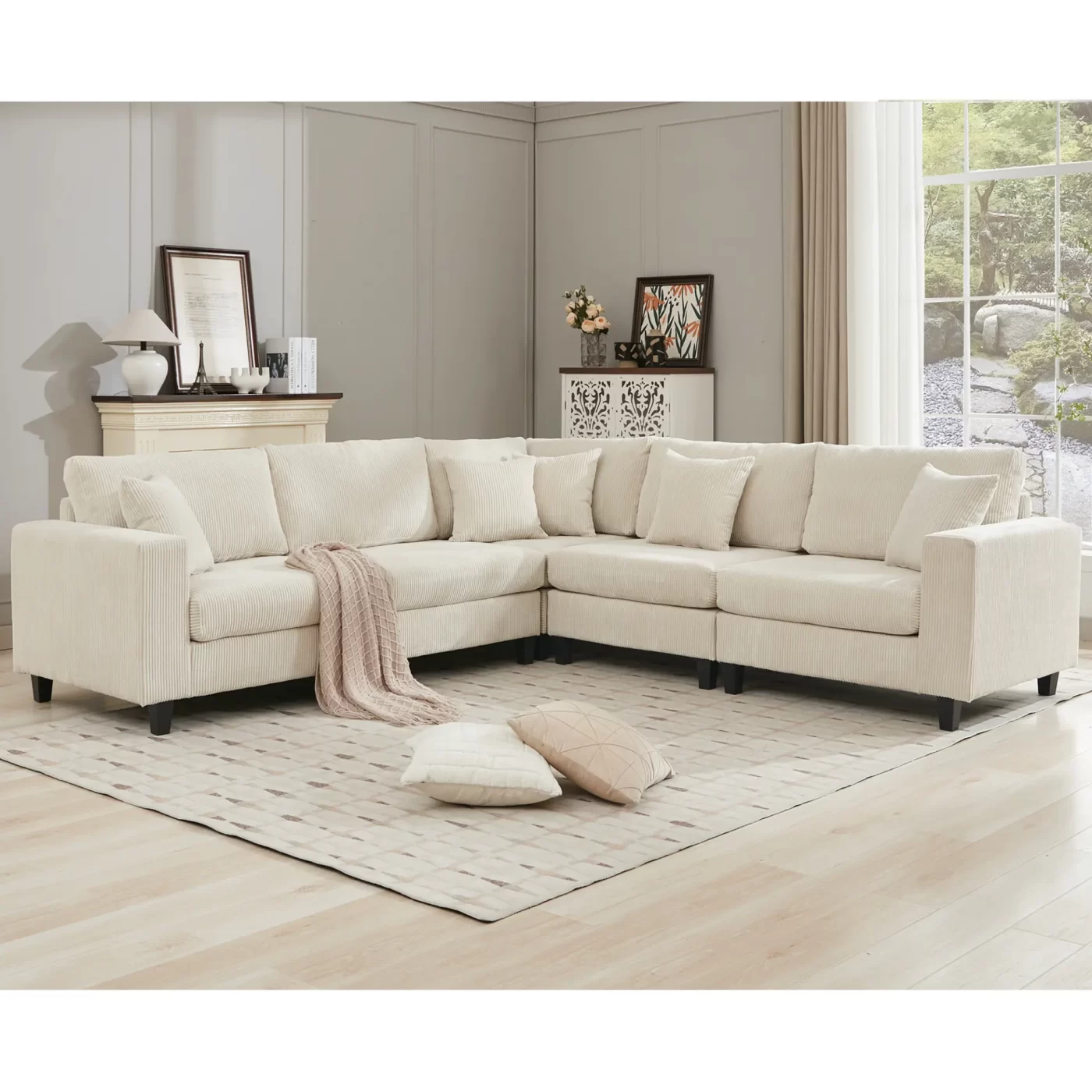 - Soft & High-density Sponge:5-seat couch filled with high-density sponge and innerspring bag to give fully support.sports corduroy of the back and seat cushions can also avoid slipping when seated.(The back of the sofa is made of the same cloth as the front of the sofa. It is beautiful to put in any space).
